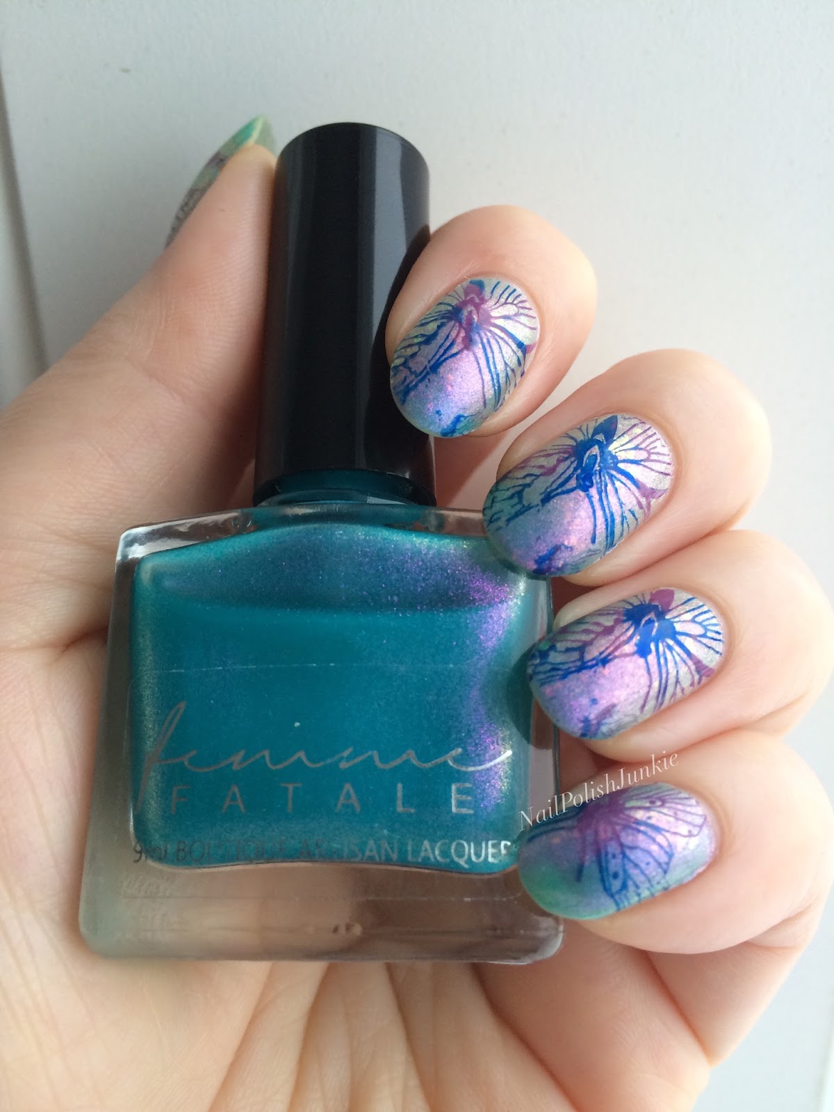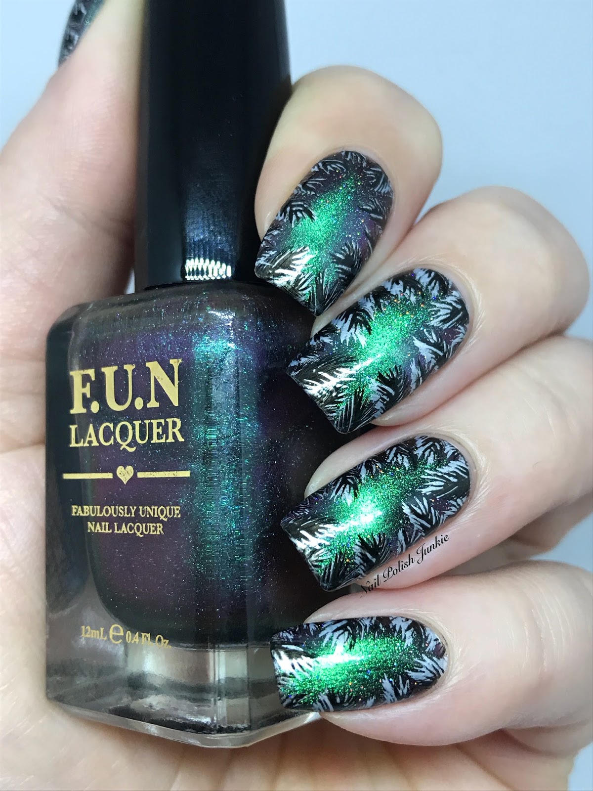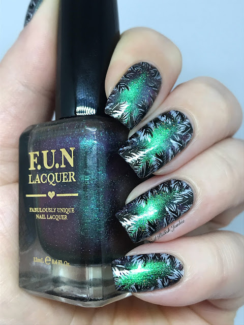 Base: F.U.N Lacquer Believe topped with INM Out the Door Northern Lights Holo Topcoat
